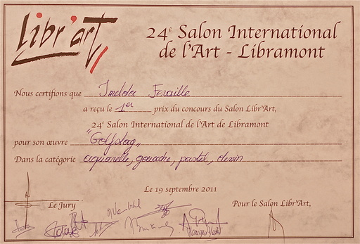 Imelda won op het 24e Salon International de l'Art de eerste prijs in de dicipline aquarelle, gouache, pastel en tekenen.